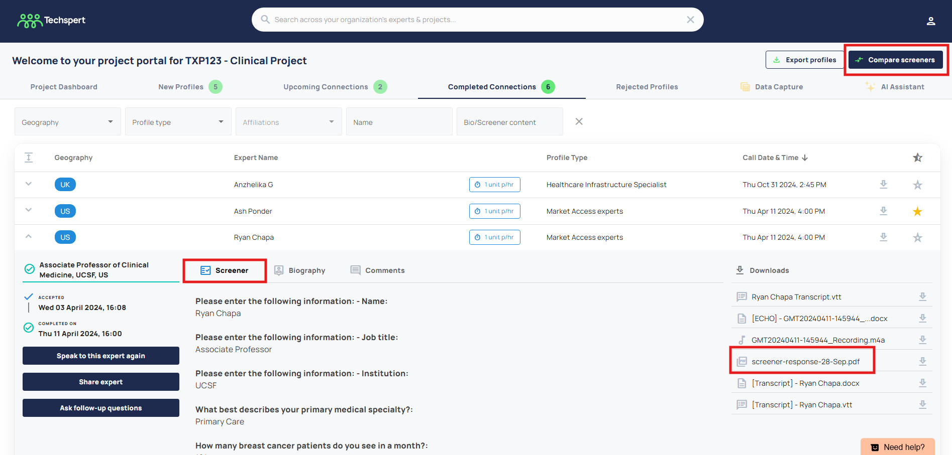 An expert's screener can be found within the chosen expert view under the “screener” tab, as well as being available as a file for you to download. In addition, you can view all screeners side by side by clicking the 'Compare screeners' button: